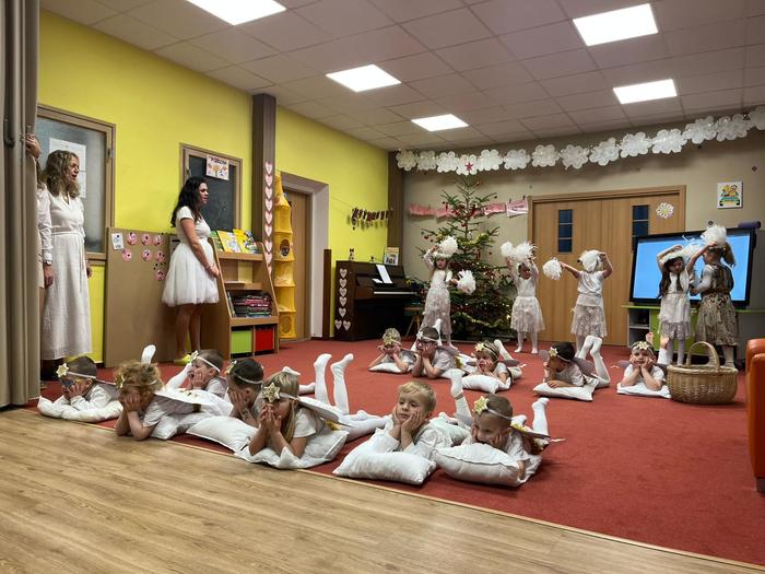 Odpoledne děti vystoupily v kostýmech andílků, vloček a nechyběla ani zářivá hvězda, která spadla na zem a stala se symbolem celého vánočního představení. Malí učinkující s nadšením předvedli pásmo vánočních básní, písniček a pohybových vystoupení, které potěšilo a dojalo všechny přítomné.