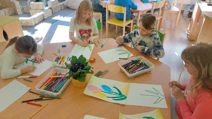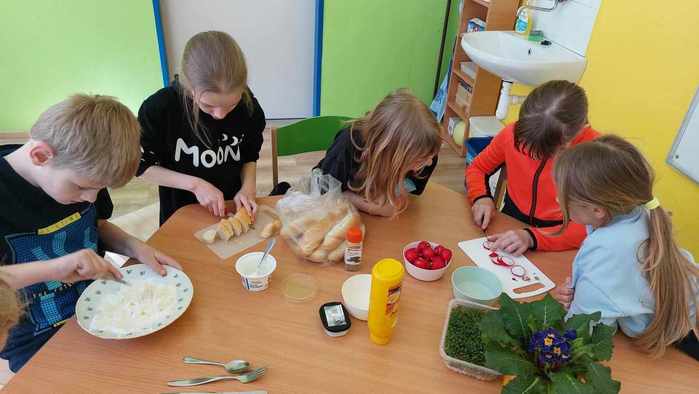 Barvy jara nám rozveselily i další aktivní měsíc v naší družině. Věříme, že barevné tulipány, které zdobí okna budovy školy, navodí jarní atmosféru i kolemjdoucím. Březen se nesl v duchu bádání. Děti vedly každodenní zápisy ze svého pozorování od vysetí řeřichy, až po její sklizeň. Pozorovaly přílet místního čápa Ládika i přílet jeho družky. Společnými silami jsme dokázali napodobit komín, který zdoby prostory naší školy a zaznamenat časové údaje. Závěrem měsíce nám dozrála vysetá řeřicha, a tak přišel vhodný čas na přípravu pomazánek, rozdělení se s ostatními a následný úklid.