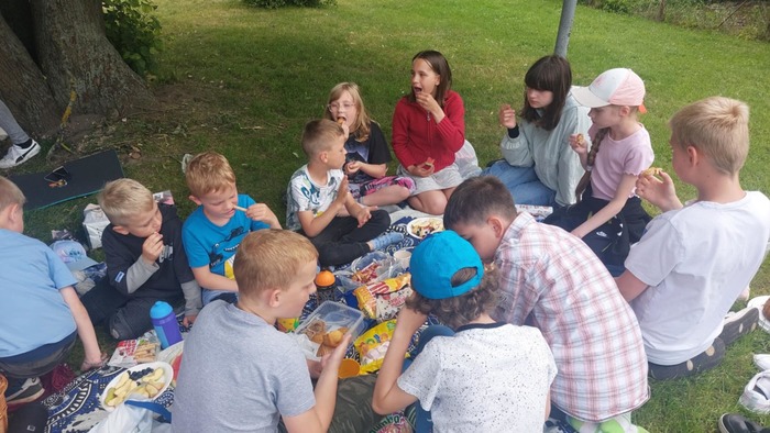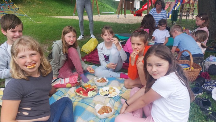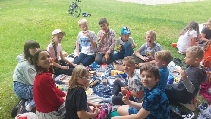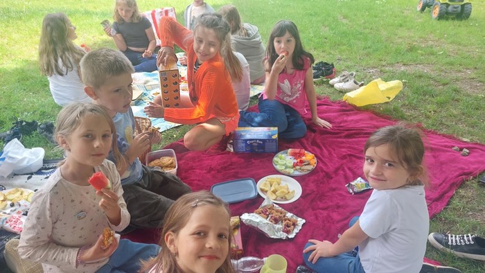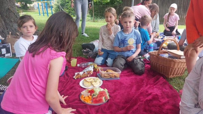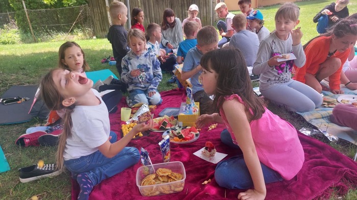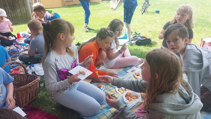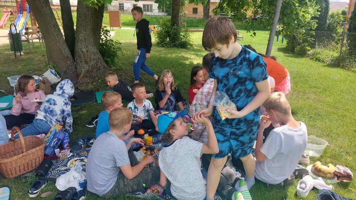 Poslední měsíc v tomto školním roce jsme odstartovali oslavou svátku všech dětí. Po sportovně stráveném odpoledni přišel vhod odpočinkový piknik, na který se děti náramně těšily. Většina si donesla různé dobroty, kterými chtěla potěšit i své kamarády, čímž se stal tento čas nejen prostředkem k prohlubování jejich přátelství. Svojí návštěvou nás potěšily i spolužáci, kteří nenavštěvují školní družinu, a také praktikantka Nikola přijala pozvání na tuto plánovanou akci.