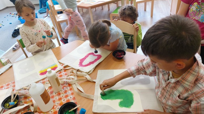 Tento školní rok, si všechny děti měly možnost namalovat svoji autorskou plátěnou tašku, která jim bude nejen sloužit na uložení jejich úboru do hodin tělesné výchovy, ale zároveň jako upomínka na školní léta na naší škole. I pro budoucí prvňáčky je již vše připraveno k jejich tvorbě. Myslím, že jsme tímto započali tradici, která se stane milou součástí vzpomínek.