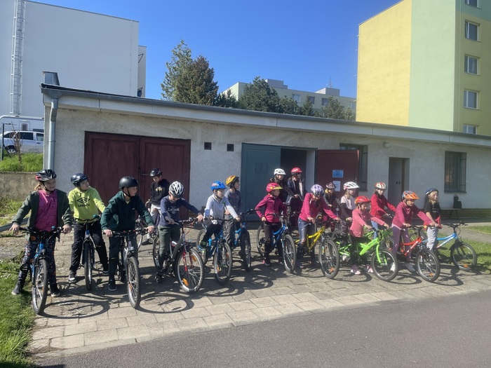 V pondělí 28.4.2025 bylo krásné počasí, proto se nám na slíbenou jízdu na kolech do Moravských Budějovic chtělo. První hodina teorie a zopakování si znalostí potřebných pro splnění testu uteklo jako voda. Test zvládly všechny děti ze 4. ročníku a právem jim náleží řidičský průkaz mladého cyklisty. Páťáci si znalosti zopakovali a pro třeťáky bylo spoustu nových poznatků, které využijí příští rok, až budou psát testy naostro. Po seznámení s dopravním hřištěm, jeho křižovatkami, dopravními značkami, hurá na kola! Přestupky, které děti udělaly byly potrestány odevzdáním žetonu. Ale moc žetonů od nás policistky nezískaly.