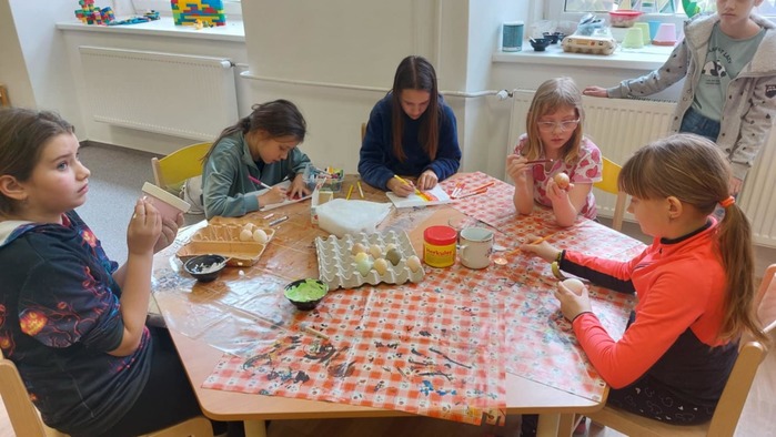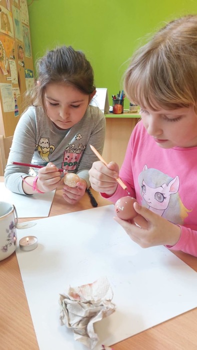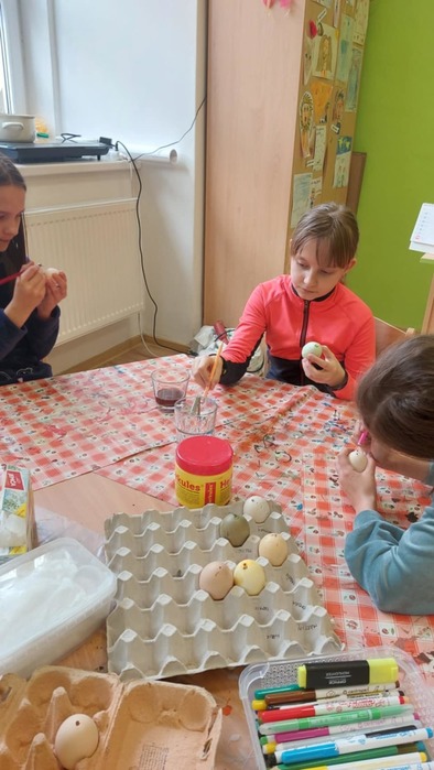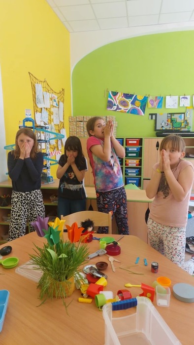 Duben nám přinesl spoustu zajímavých zkušeností. Nejen že jsme si mohli vyzkoušet různé techniky zdobení velikonočních vajíček, ale i dozvědět se o odlišnostech oslav toho svátku v jiných zemích. Děti upletly spoustu věnečků z pampelišek, vyzkoušely si pokusy s jarními květinami, někteří se dokonce naučili pískat pomocí stébla trávy.
