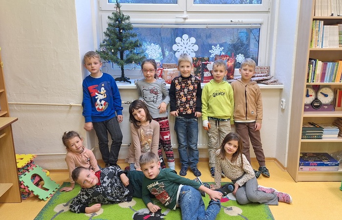 Poslední den před vánočními prázdninami jsme odstartovali výrobou přáníček a svícínků. Pochutnali si na cukroví a společně zhlédli pohádku Anděl Páně 2. Poté se děti odebraly do svých tříd, kde si mezi sebou rozdaly dárečky, zahrály si různé hry a zazpívaly vánoční koledy.