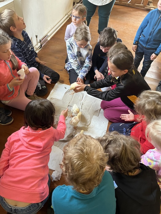 Jarní období na farmě je zaměřeno převážně na péči o mláďata. Dětem bylo hravou formou rozšířeno povědomí o vzniku života mláďat savců a ptáků. Seznámily se s jejich kvalitními životními podmínkami a zopakovaly si získané informace formou příběhu. Největším zážitkem byl pro mnohé přímý kontakt s nedávno narozenými kuřátky.